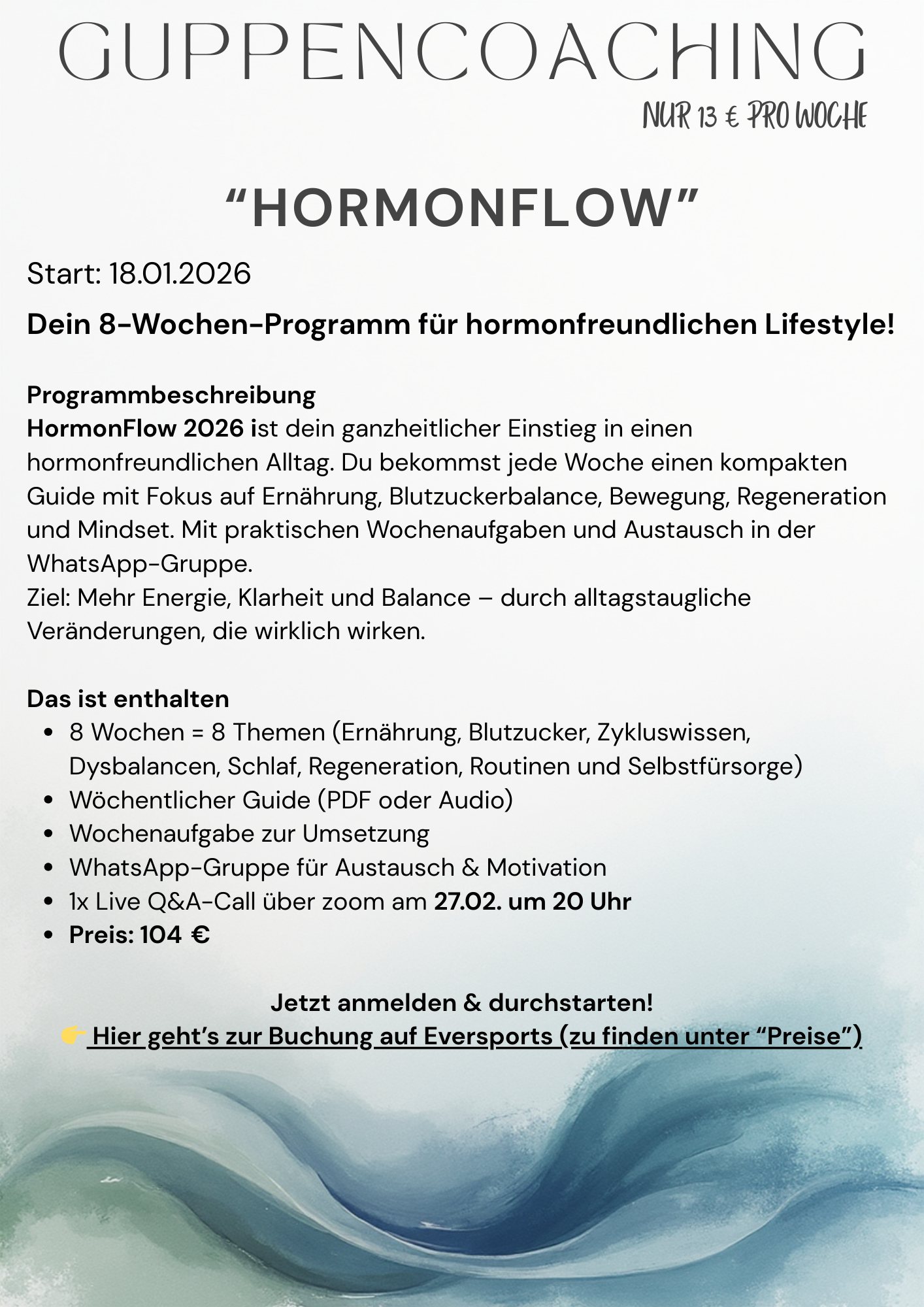 Zu dem biete ich auch ein Coaching an und immer wieder Gruppenonline Angebote zum Thema Hormone an.
